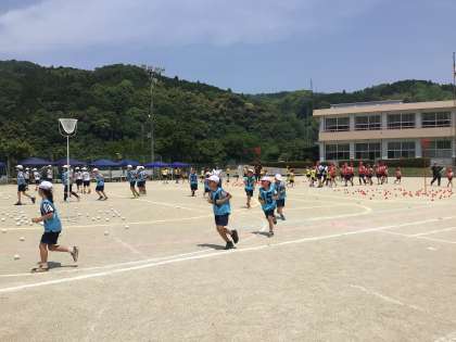 運動会練習 玉入れ 公開日 2023/05/18 更新日 2023/05/18 学校行事 5月18日(木)、玉入れ練習です。初めて赤組が勝利しました。バンザイに力が入っています。 玉入れに使った玉は高学年が片づけて退場します。