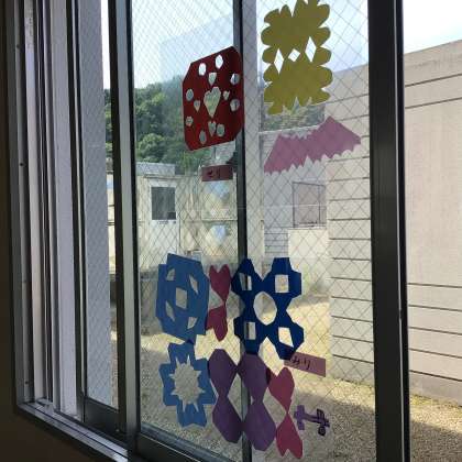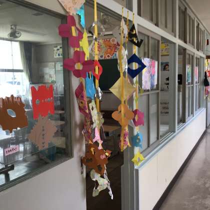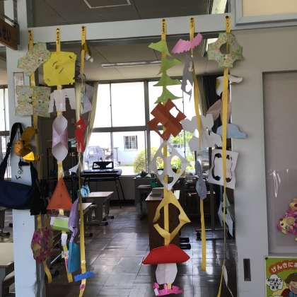 1年生 ちょきちょき飾り 公開日 2023/05/18 更新日 2023/05/18 各学年から 1年生が図工で作った飾りが、教室に飾られています。ゆらゆら揺れたり、窓に貼ってあったりして、楽しいです。