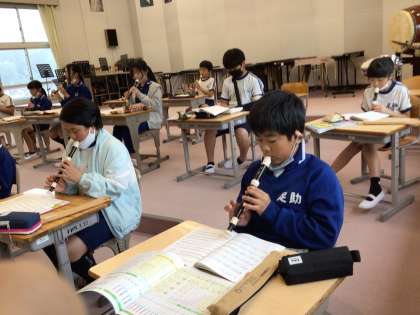 6年生 カントリーロード 公開日 2023/05/19 更新日 2023/05/19 各学年から 5月19日(金)、残念ながら、朝から雨です。今日は運動会の練習は少しお休みです。 6年生はリコーダーで、カントリーロードの演奏をしていました。美しい響きはさすが6年生。