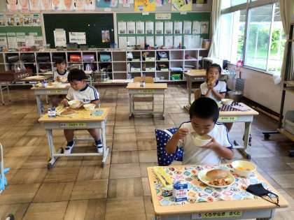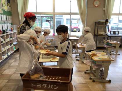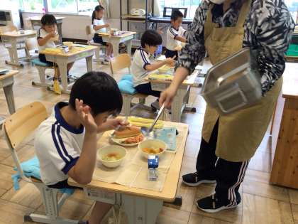 2年生は、準備中からお邪魔しました。上手に盛り付けて、配っているのはさすが2年生です。