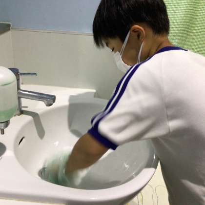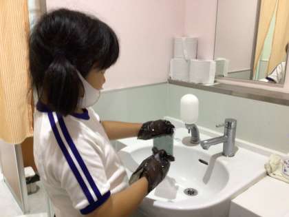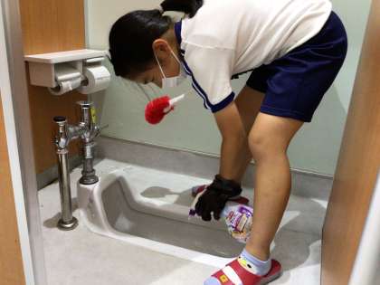 5月31日(水)、一階トイレを掃除しています。順番を確認しながら、頑張っていました。