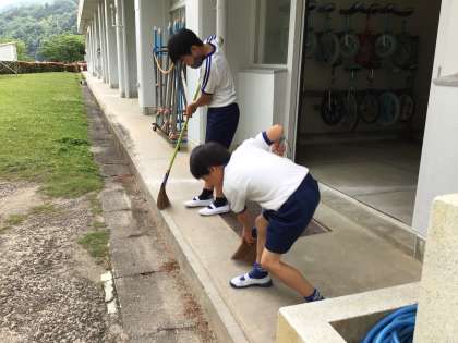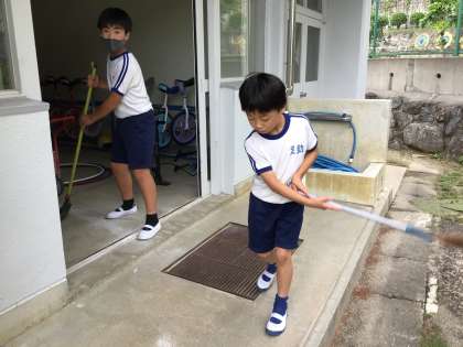 玄関掃除 公開日 2023/05/31 更新日 2023/05/31 特別活動 玄関の掃除は、溝の中までしっかり見て、ほうきで上手に掃いていました。細かいところも、よく気をつけて見ています。 細かいところと言えば、置いてあるものを取って拭いている姿も見つけました。