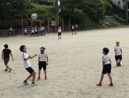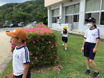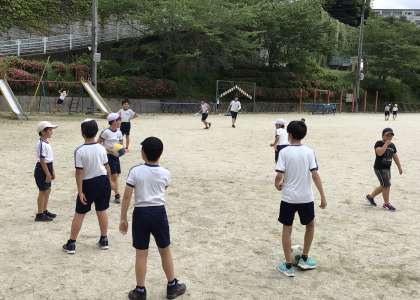 6月1日(木)、梅雨の合間の晴れです。あすっこタイムの運動場はにぎやかです。