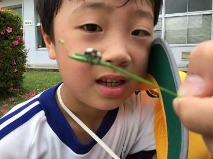 あすっこタイムに、ゾウムシを発見して見せてくれました。小さいけれど、見えるかな。