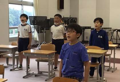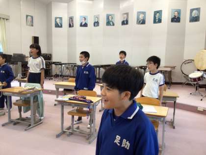 5年 歌えバンバン 公開日 2023/06/06 更新日 2023/06/06 各学年から 6月6日(火)、5年生の音楽は月の歌「歌えバンバン」から始まりました。口をあけて、美しい声を出そうと頑張っています。