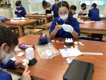 6月6日(火)、6年生は下から光を当てる作品を製作中です。できたら、撮影します。イメージ通りに光るかな。
