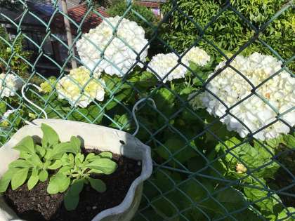 学校の土手には、真っ白な紫陽花が咲き始めました。とてもきれいです。