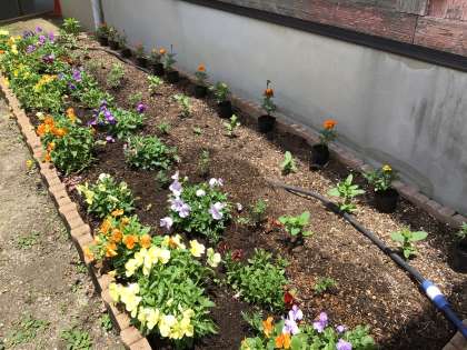 この前いただいたペチュニアやマリーゴールドも、公務手さんが花壇やフェンスの植木鉢に植えてくださいました。