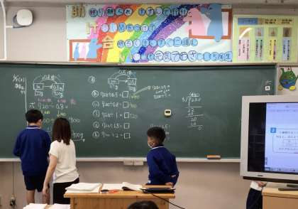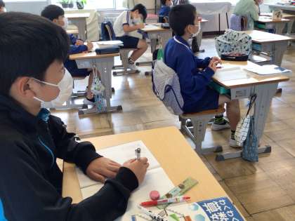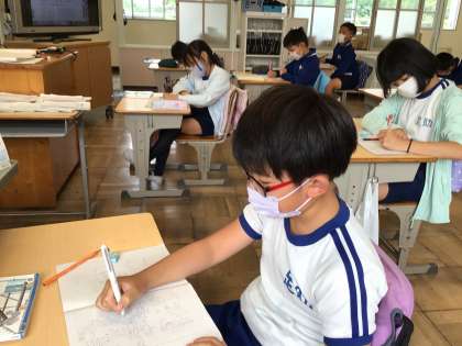 6月8日(木)、小数の割り算を学習している5年生です。割る数と商の大きさの関係に注目します。「かけ算と反対だ」と言うつぶやきも聞こえてきました。前の学習と関連づけて思考するのは大切なことです。