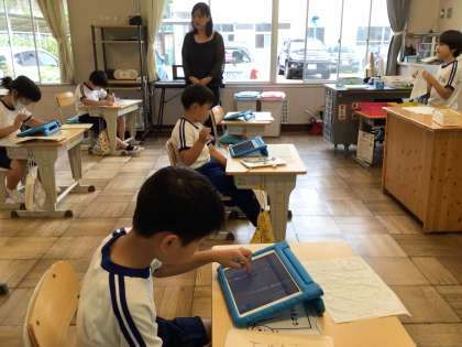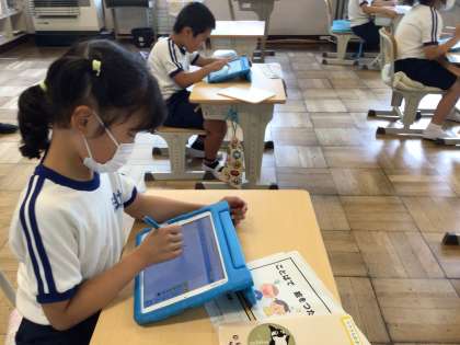 2年 国語 言葉を絵で伝えよう 公開日 2023/06/14 更新日 2023/06/14 各学年から 6月14日(水)、2年生は言葉で説明して、タブレットに絵を描いていました。聞いた通りに描いて行くと、ちょっとずつ違う絵ができます。どんな言葉で伝えると、うまく伝わるのかを考えました。