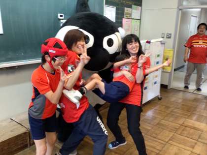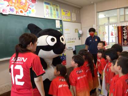 グランパス あいさつ運動 1 公開日 2023/06/15 更新日 2023/06/15 学校の特色ある活動 6月15日(木)、今年もグランパス君が来て、あいさつ運動を行いました。 グランパス君が教室に来ると、みんな大喜び。