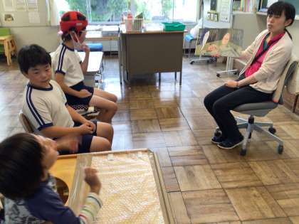 6月19日(月)、本の読み聞かせをとても喜んで聞いていました。その後の感想も、場面の細かいところに気づいて話したり、最初と最後のことを関連づけて話したりできました。