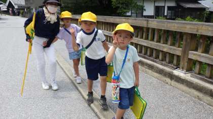 足助の町の中をみんなで歩きました。知っている人にもたくさん出会いました。