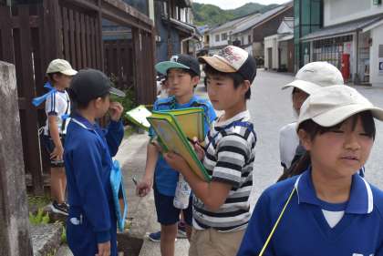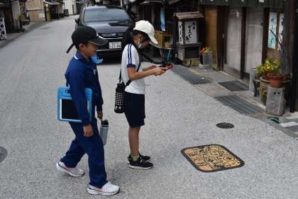6月20日(火)、4年生が防災マップづくりのために足助の町を回りました。