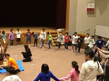 最後のスタンツはマイムマイムです。火を囲んで、みんなで丸くなり、ダンスダンスダンス