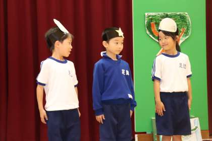 6月23日(金)、1年生が2年生を招いて、とんこととん発表会を行いました。