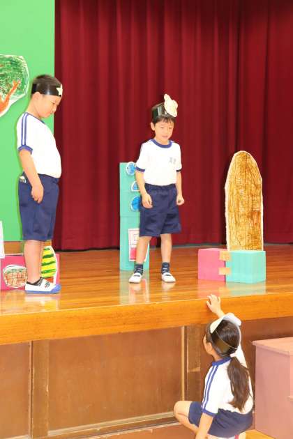 1年 とんこととん発表会 続き 公開日 2023/06/26 更新日 2023/06/26 各学年から 国語の学習で、場面や登場人物の気持ちが伝わる言い方をみんなで考えて、2年生に見せました。 楽しく、かわいく、元気に演じていました。