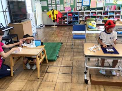 わくわく2 自立活動 ぎゅぎゅ 公開日 2023/06/28 更新日 2023/06/28 各学年から 6月27日(火)、わくわく1学級の自立活動は、手を使っての作業をしていました。 カレンダーの薄い紙をちぎり、ぎゅぎゅとまとめます。5分間での達成目標を自分で決めて、頑張りました。二人とも見事、目標達成です。