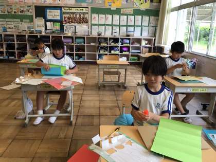 2年 窓を開けると 公開日 2023/06/28 更新日 2023/06/28 各学年から 6月28日(水)、2年生はカッターを使って紙を切り取り、窓を開けています。 この窓を生かした作品を作ります。素敵な窓を開けてくださいね。