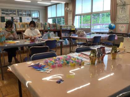 図書館ボランティア 七夕飾り 公開日 2023/06/30 更新日 2023/06/30 学校の特色ある活動 6月29日(金)、図書館ボランティアの方がみえて、図書館の飾りを作ってくださいました。 来週からは7月になるので、七夕飾りです。季節感にある図書館に、子どもたちはどんどん足を運びそうです。