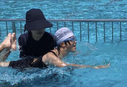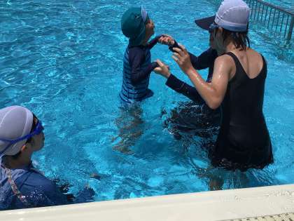 7月3日(月)、わくわく1学級でプールを満喫しています。暑い日のプールは気持ちいいですね。
