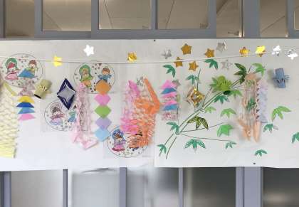 わくわく 七夕飾り 公開日 2023/07/04 更新日 2023/07/04 各学年から 7月3日(月)、七夕飾りを作っています。 順序よく並べたり、色を塗ったり、のりでつけたり。みんなで作り上げた七夕飾りは廊下に飾りました。夏らしい廊下です