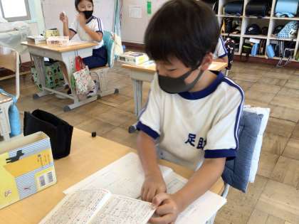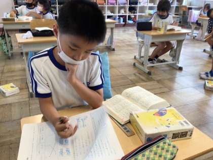 3年 辞典を使って 公開日 2023/07/04 更新日 2023/07/04 各学年から 7月4日(火)、3年生は国語辞典を使って、ことばのきまりの学習をしています。「まぶしく」は「まぶしい」という言葉で探さなくてはいけません。辞典を一生懸命めくって、目的の言葉が見つかると笑顔になりました。