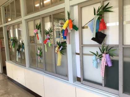 7月7日が近づいてきました。学校のあちらこちらに七夕飾りが飾られています。みんなの願い事が叶いますように。