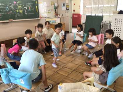 1年 七夕バスケット 公開日 2023/07/07 更新日 2023/07/07 各学年から 7月7日(金)、七夕パーティーを楽しんでいる1年生。 ちょうど「七夕バスケット」のときにお邪魔しました。それぞれ「星」や「彦星」などのシールをつけて、七夕バスケットで盛り上がっていました。
