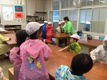 残念ながら、今日も雨が降ってしまいました。それでも川まで行きたいとカッパを被って準備していた子どもたちでしたが、ついには雷まで鳴り出したため、断念せざるを得ませんでした。