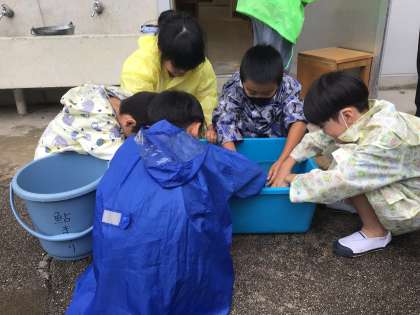 1・2年 稚鮎の放流 2 公開日 2023/07/13 更新日 2023/07/13 学校の特色ある活動 図工室で、クルマエビやアサリなど愛知県の水産物やアユについてのお話を聞いた後、大きなたらいに入れられた稚鮎を、手で捕まえてバケツに移しながら、「香魚」の名前通り、きゅうりのにおいがすると気付いたり、ぬるぬるする感触を楽しんだりしました。
