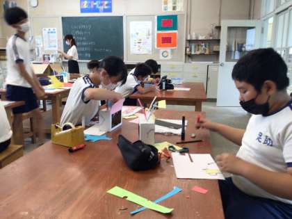 6年 くるくるクランク 公開日 2023/07/14 更新日 2023/07/14 各学年から 7月14日(金)、クランクの動きを利用して動く作品を作ります。海、宇宙、四季など、それぞれのイメージした世界が動き出します。