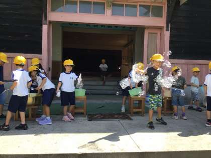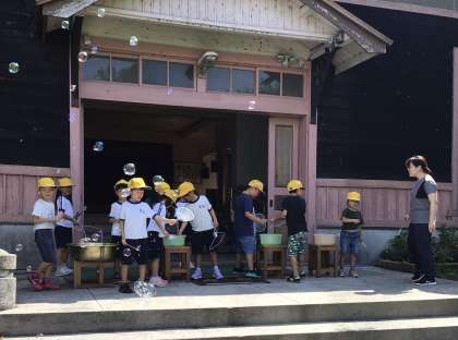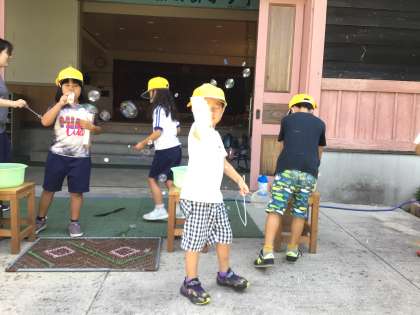 1年 シャボン玉 公開日 2023/07/18 更新日 2023/07/18 各学年から 7月18日(火)、1年生は、それぞれ家から用意してきた道具を使って、シャボン玉を楽しみました。大きなシャボン玉、たくさんのシャボン玉など、いろいろなシャボン玉が講堂の上まできらきら光って飛んでいきました。