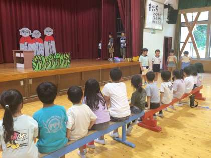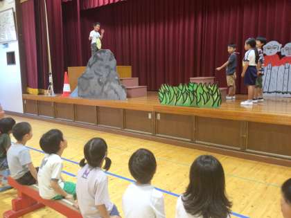 2年 名前を見てちょうだい 発表会 1 公開日 2023/07/20 更新日 2023/07/20 各学年から 7月20日(木)、2年生は1年生を招いて、「名前を見てちょうだい」の発表会をしました。 2グループに分かれて、それぞれのイメージで演じていました。