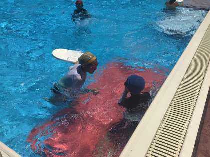 5・6年 プール納め 公開日 2023/07/20 更新日 2023/07/20 各学年から 7月20日(木)、5・6年生のプール納めです。水中ポートボールや水中鬼ごっこなどで、真夏のプールを満喫しました。いい色になりました。