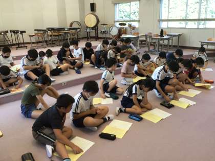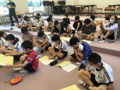 9月1日(金)、学芸会の台本を手にしていた5・6年生。どんな役があるのか、興味津々の様子でした。