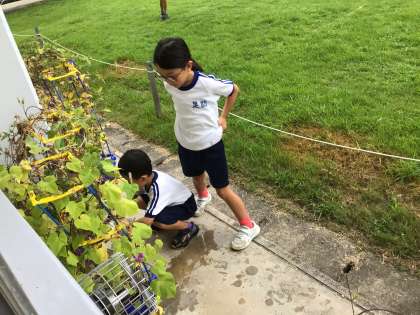 1年生 朝顔が帰って来ました 公開日 2023/09/04 更新日 2023/09/04 各学年から 9月4日(月)、夏休みが終わって、朝顔が学校に帰って来ました。まだ花をつけているもの、種がたくさんできているもの、それぞれです。「200個、種が取れた」と話す子もいました。