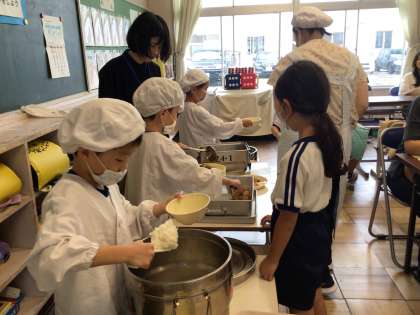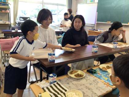 1年生 給食試食会 1 公開日 2023/09/07 更新日 2023/09/07 各学年から 9月6日(水)、1年生はお家の方と一緒に給食を食べる給食試食会を行いました。 給食の献立を考えてくださる栄養教諭さんから、給食のお話を聞いた後、いよいよ給食試食会です。 いつもよりたくさんの給食の準備をしました。