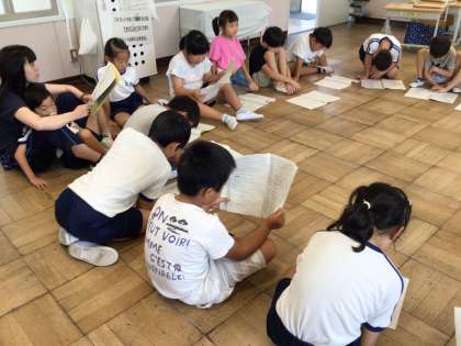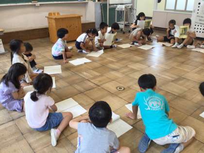 9月8日(金)、1・2年生の劇の読み合わせ練習の様子です。