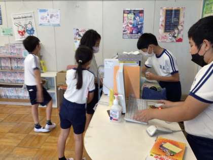 9月8日(金)、図書委員会のTAKE ACTION期間中でもあり、雨模様だったので、もみじタイムの図書室はとてもにぎやかでした。図書委員会の「読書マスターになろう」カードのスタンプはたくさん押してもらえましたか?