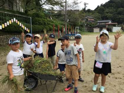 一輪車に何杯も取って、運んでいました。きれいなところがとても増えました。ありがとう。学校を自分たちの力できれいにしようという気持ちがとてもうれしかったです。