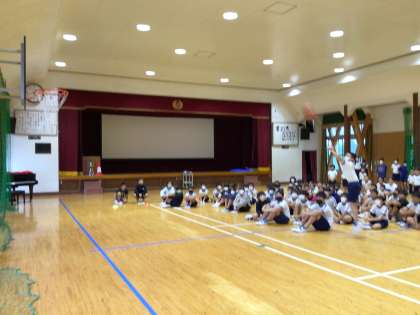 続いて、情報委員会の「出でよ、あすっこヒーロー」では、48年ぶりにオリンピックに出られることで話題になっている、バスケットボールのスリーポイントを披露していました。見事に、ボールがリングに吸い込まれると、大きな拍手が起きました。