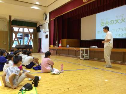 4年生 重伝建学習 防災 1 公開日 2023/09/11 更新日 2023/09/11 各学年から 9月11日(月)、4年生が重伝建の学習を行いました。 堀部先生、豊田市役所の方に来ていただき、足助の田町、本町、新町が燃えたという「安永の大火」のお話から、防災について考えました。