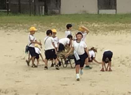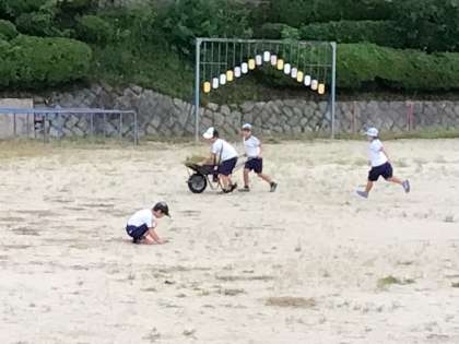 9月11日(月)、あすっこタイムにかわいい草取りボランティア隊が出てきました。「10本取るよ」と張り切って運動場に出てきたのですが、ちょうどそのタイミングで雨が降り出したので、急いで校舎に駆け戻ることになりました。