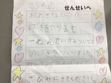 1年生からの招待状 公開日 2023/09/13 更新日 2023/09/13 各学年から 9月13日(水)、1年生が職員室に来て、かわいい招待状を渡してくれました。 明日、「大きなかぶのげき」を発表してくれるそうです。しかも、オリジナルの劇だそうです。とても楽しみです。