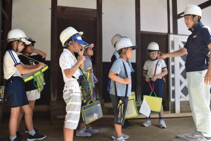 4年生 重伝建学習 見学 公開日 2023/09/14 更新日 2023/09/14 各学年から 9月13日(水)、4年生が重伝建学習で、紙屋やマンリン小路などに出かけました。前回、雷のために延期したものです。今回は暑い日になりましたが、堀部先生や豊田市文化財課の方たちに来ていただき、実際の施設を見ながら、充実した学習を行いました。