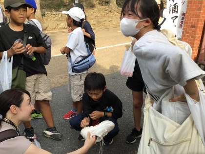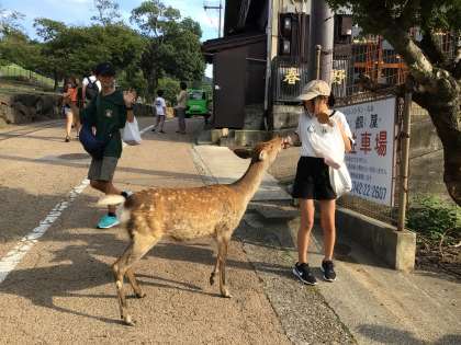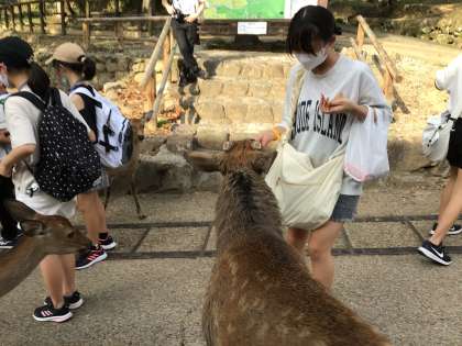 6年生 修学旅行 東大寺6 公開日 2023/09/15 更新日 2023/09/15 各学年から 最後はシカシリーズです。 靴にはまってしまったシカのタピオカ(ガイドさんの言葉です)を、枝で取ってくれています。