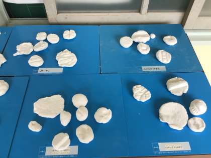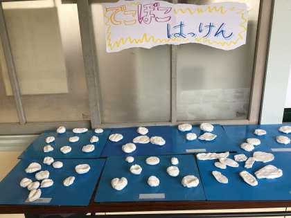 1年生の図工の作品です。学校にあるでこぼこ模様をたくさん見つけて、写しました。