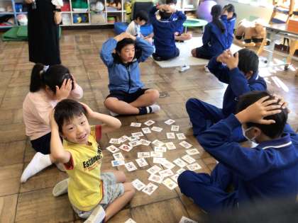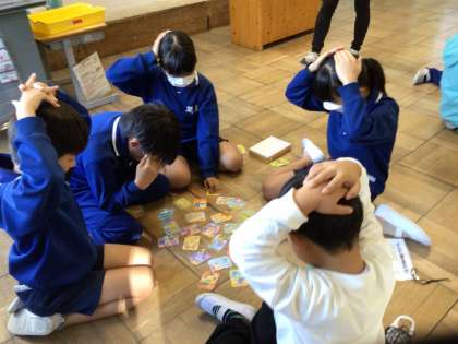 おしゃべりタイム 1 公開日 2023/10/03 更新日 2023/10/03 学校の特色ある活動 10月3日(火)、今週の金曜日は、朝の時間に前期終業式を行うので、今日、火曜日におしゃべりタイムを行いました。今回は、カルタです。