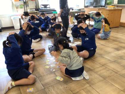 おしゃべりタイム 2 公開日 2023/10/03 更新日 2023/10/03 学校の特色ある活動 カルタを続け来て、少しずつ聞く姿勢になるタイミングが早くなった気がします。カルタを見つけるスピードも早くなりました。